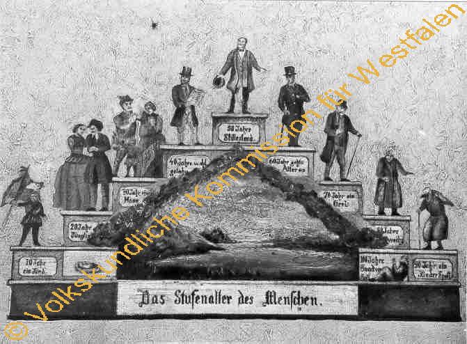 Die Vorlage des Ölbildes ist eine Druckgraphik in der Art wie die Lithographie Inv.-Nr.0000.20267: "Das Stufenalter des Menschen", Druck u. Verlag von E.G. May Söhne, Frankfurt/M.