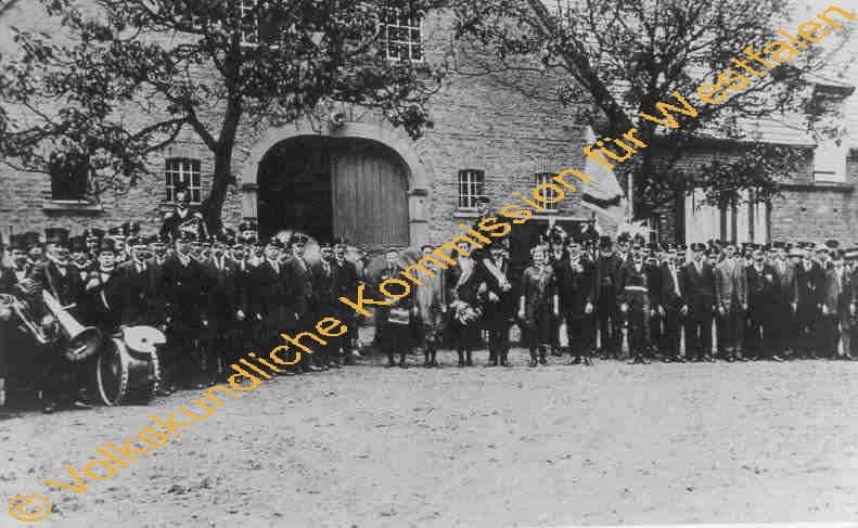 Vom Nachbarhofe Wigger - Catenhorn 29 - wird die Königin Anna Wigger abgeholt. Links im Bild der Oberst Hubert Heemann zu Pferde.