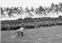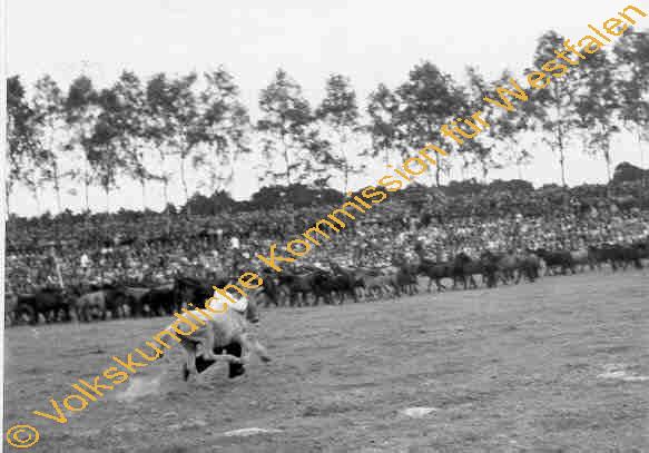 Der Fänger hat das Fohlen an der Mähne gepackt.