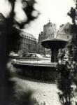 Der Brunnen steht vor dem Rathaus.