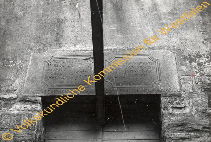 Über der Eingangstür zur Mühle ist eine Bruchsteinpallte eingemauert, auf der folgender Psalm zu lesen ist: Psalm 37 V 4 E 13; "Habe deine Lust an dem Herrn. Der wird dir geben was dein hertz wünschet. Befierhl dem Herren deine Wege und hoffe auf ihn. Er wirds wohl machen. Anno 1780 Darunter sind die Namen des Ehepaars zu lesen, die die Mühle haben bauen lassen: Iohan Friedrich Kamplade G.N. Knösel & Maria Catharina Knösel E. L.