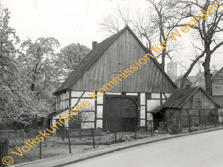 Inschrift: O GOTT BEHÜTE DU DAS HAUS AUCH ALL SO WOHNEN DREIN / TREIB ALLES UNBLÜCK VON IHNEN AUS LAS DIE DOCH GLÜCLKICH SEYN / EBERHARD HESELMAN UND ANNA KOCKELKE EHELEUTE HABEN DIS GEBAUET ANNO UR SUPRA 1731 den 20 Iuny
