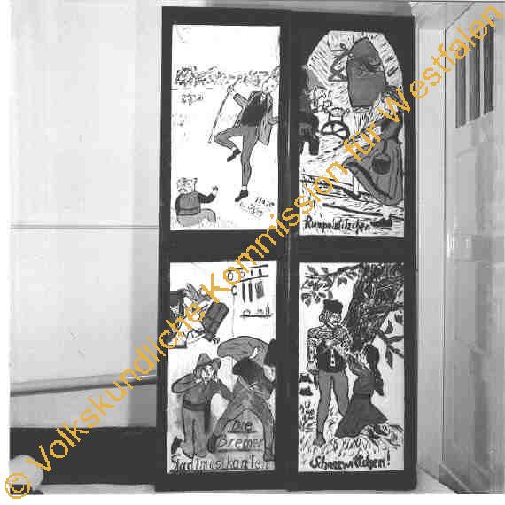 Fenstertransparent : oben Hase und Igel und Rumpelstielzchen unten Bremer Stadtmusikanten und Schneewittchen