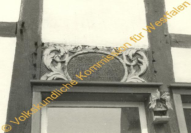 Die Platte befindert sich in der Mitte des einstigen Bauernhauses. Sie deutet darauf hin, dass dieses Haus an der Stelle eines Abgebrannten errichtet wurde.
