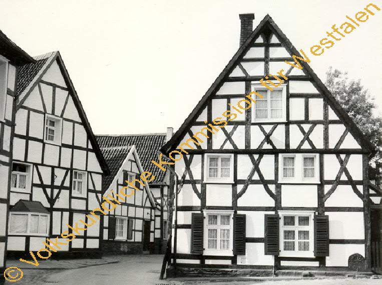 Das Haus vorne rechts gehörte früher der Familie Mollenhoff. Der Grabstein der Familie ist rechts unten in der Hauswand.