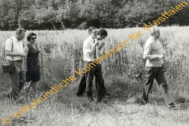 Zu sehen sind die Teilnehmer der VII. Internationalten Konferenz der "Ethnologia Europaea".v.l. Prof. Stocklund, Dr. Thompson, Matter, Prof.Weber Kellermann, Prof. Cox.