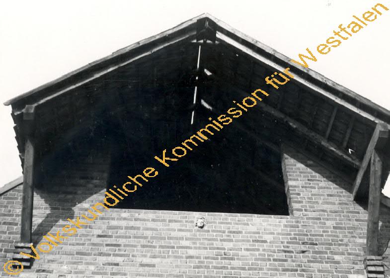Unter dem stets offenen Giebelfenster ein Engelskopf, der von dem zerstörten Bildstock am Hause Gassel stammt.