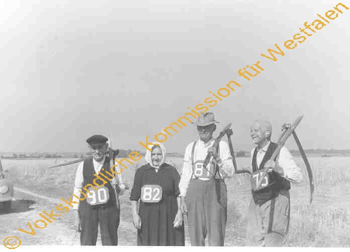 Herr Balkenholl berichet dazu in seinem Brief (gb Nr. 693/62): Der älteste 90jährige, Heinrich Tillmann, war vom 14. bis 20. Lebensjahre bei meinem Vater als Knecht, dann 3 Jahre Paderborner Husar, dann Eisenbahner, viele Jahre Rottenführer. Die Frau anna Tillmann, geb. Kramer, (82) ist die Schwägerin des Heinrich T. auch sie war bei meinem Vater als Mädchen. Wilhelm Schröder, der größte (81), war ebenfalls als Knecht hier im Dorf bis zu seiner Militärzeit beschäftigt und wurde dann Eisenbahner. Alle sind mit landwirtschaftlichen Arbeiten bestens vertraut.