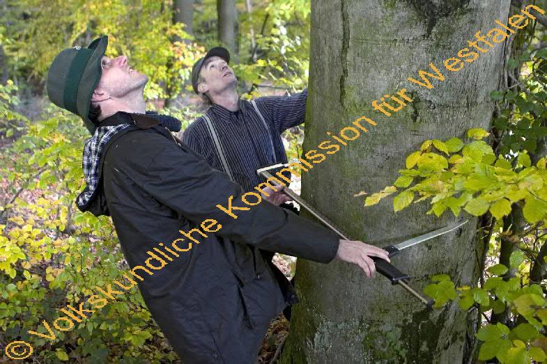 Förster Dr. Georg Berkemeier und Waldbesitzer Hermann Lammers ermitteln den Durchmesser eines Buchenstammes mit Hilfe einer Kluppe. Die Kluppe ist ein in der Forstwirtschaft gebräuchliches Messinstrument, das überwiegend bei der Ermittlung des Durchmessers von Rundholz Verwendung findet.