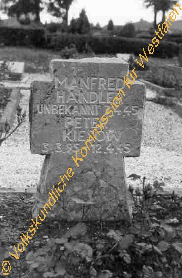 Inschrift: Manfred Handler unbekannt 7.4.45 Peter Kiesow 3.3.95-12.4.45
