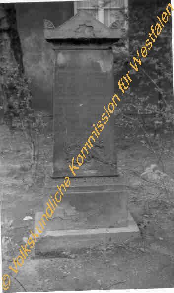 Das Girlandenornament an der Abschlusskante des Sockels wiederholt sich am Rande des Oberteils. Inschrift lautet: "Joh. Engelb. Wilh. Over.../geb. d. 7. Novbr. ... gest. d. 6. Febr. 1842/ Anna Gertrud Bickern, Ehefrau/ Joh. Henr. Overkamp/ geb. d. 27.. Sept. ... gest. d. 26. Febr 1848/ Anna Mare Enngelmann Ehefrau/ H. Wilh. Overkamp/ geb. d. ... gest. d. 6. Mai 1846/ Freidr. Heinr. Overkamp/ geb. d. 24. Januar 1834/ gest. d. 29. März 1842." (Sockel und Oberteil enthalten weitere Namen).