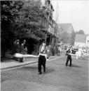 Heinz Schmidt von BSV Duisburg-Hüttenheim (dahinter: Schönenborn, Hommes, Klaus Kenter).
