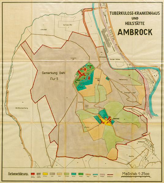 Hagen: Tuberkulose-Krankenhaus und Heilstätte Ambrock [mit Einzeichnung der Nutzungsarten] | [um 1965]