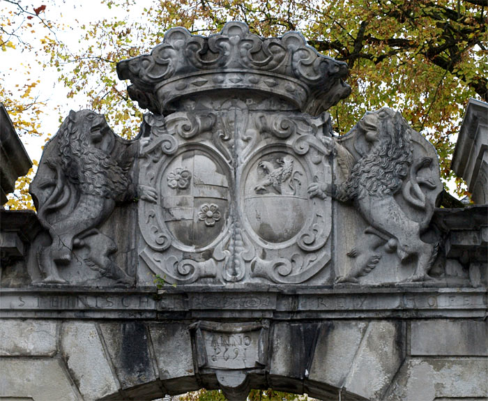 Nassau a. d. L.: Wappen am Hoftor des Steinschen Stadtschlosses ("Steinscher Frey Hoff"), datiert 1691, 2007 | 2007-10-27 Weidner, Marcus | Marcus Weidner | MW271135 URL: http://www.westfaelische-geschichte.de/med1665 Internet-Portal "Westfälische Geschichte"