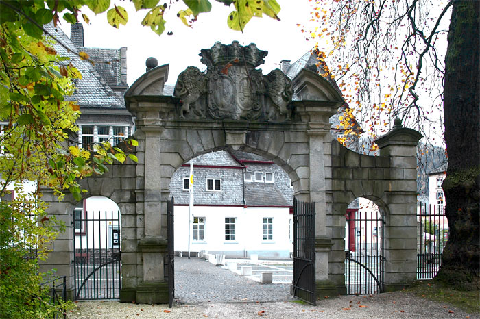 Nassau a. d. L.: Rückseite des Hoftors des Steinschen Stadtschlosses ("Steinscher Frey Hoff"), datiert 1691, 2007 | 2007-10-27 Weidner, Marcus | Marcus Weidner | MW271120 URL: http://www.westfaelische-geschichte.de/med1666 Internet-Portal "Westfälische Geschichte"
