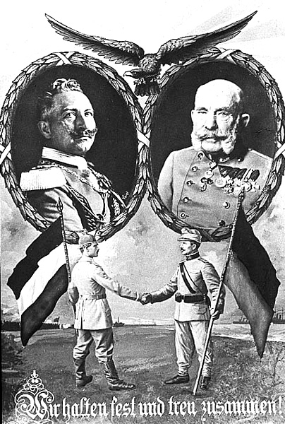 Erster Weltkrieg: "Wir halten fest und treu zusammen!" Kaiser Wilhelm II. und Kaiser Franz Joseph I. auf einer Postkarte des Kriegsjahres 1914 | 1914 Münster, LWL-Medienzentrum für Westfalen | 01_4790 URL: http://www.westfaelische-geschichte.de/med1872 Internet-Portal "Westfälische Geschichte"