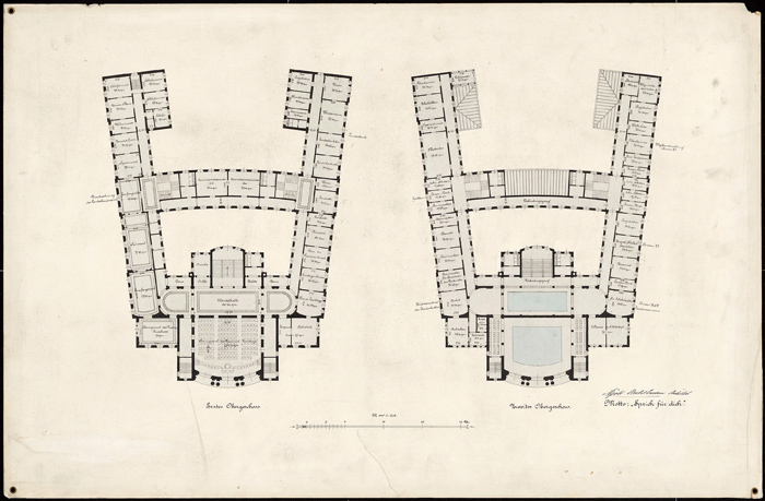 [Münster, Mauritztor/Fürstenbergstraße: Entwurf "Sprich für dich" für ein Landeshaus der Provinz Westfalen, Grundrisse Erstes Obergeschoss und Zweites Obergeschoss] | 1897 Objekt: Architekturmuseum der TU Berlin in der Universitätsbibliothek | 13728 URL: http://www.westfaelische-geschichte.de/kar231 Internet-Portal "Westfälische Geschichte"