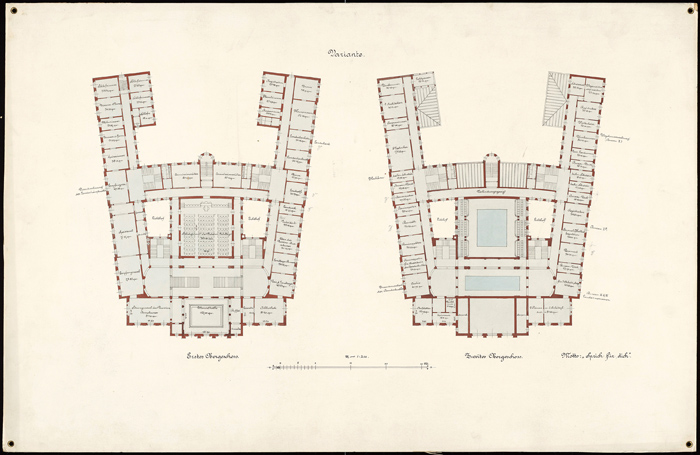 [Münster, Mauritztor/Fürstenbergstraße: Entwurf (Variante) "Sprich für dich" für ein Landeshaus der Provinz Westfalen, Grundrisse Erstes Geschoss und Zweites Geschoss] | 1897 Objekt: Architekturmuseum der TU Berlin in der Universitätsbibliothek | 15608 URL: http://www.westfaelische-geschichte.de/kar234 Internet-Portal "Westfälische Geschichte"