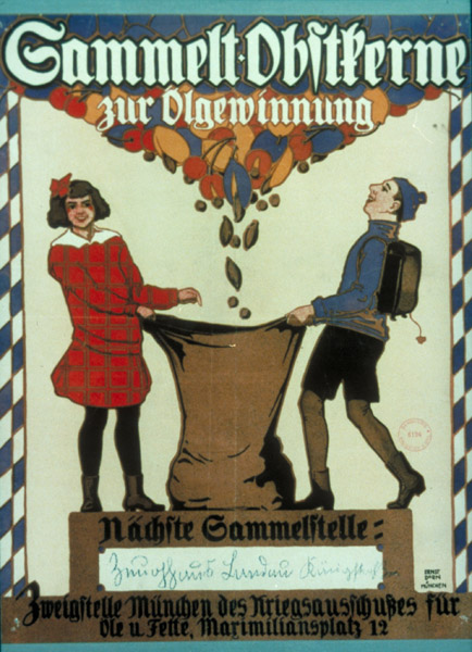 "... Sammelt Obstkerne zur Ölgewinnung!" Zeitgenössisches Plakat | 1916 [um]