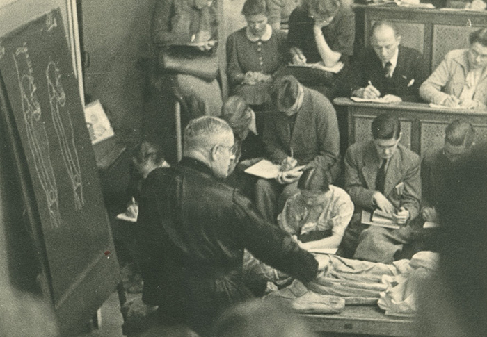 Berlin: Blick in eine Anatomievorlesung von Prof. Stieve in der Friedrich-Wilhelms-Universität, Wintersemester 1939/40 | 1939/1940 Privatbesitz Gaby Engel