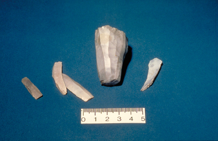 Werkzeugherstellung in der Steinzeit: Kernstein mit Klingenabschlägen (Mittelsteinzeit), Fundort: Langelau, Gemeinde Schlangen-Oesterholz, Kr. Lippe Objekt: Detmold, Lippisches Landesmuseum URL: http://www.westfaelische-geschichte.de/med286 Internet-Portal "Westfälische Geschichte"
