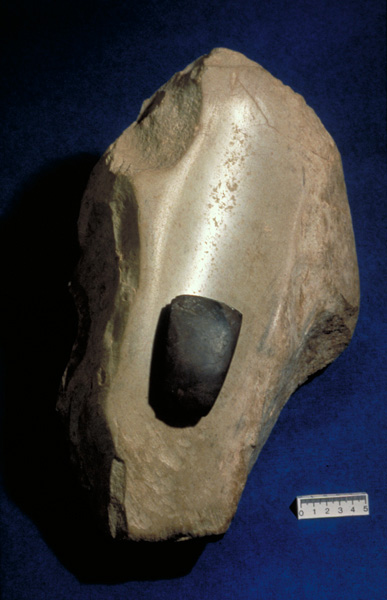 Werkzeugherstellung in der Steinzeit: Schleifstein (Jungsteinzeit, Michelsbergerkultur), Fundort: Osterwick, Kreis Coesfeld Objekt: Münster, Westfälisches Museum für Archäologie URL: http://www.westfaelische-geschichte.de/med289 Internet-Portal "Westfälische Geschichte"
