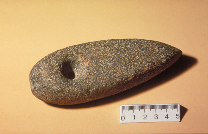 Werkzeugherstellung in der Steinzeit: Unvollendete Vollbohrung (Jungsteinzeit; Trichterbecherkultur), Fundort: Bremke/Uffoburg, Gemeinde Extertal, Kreis Lippe