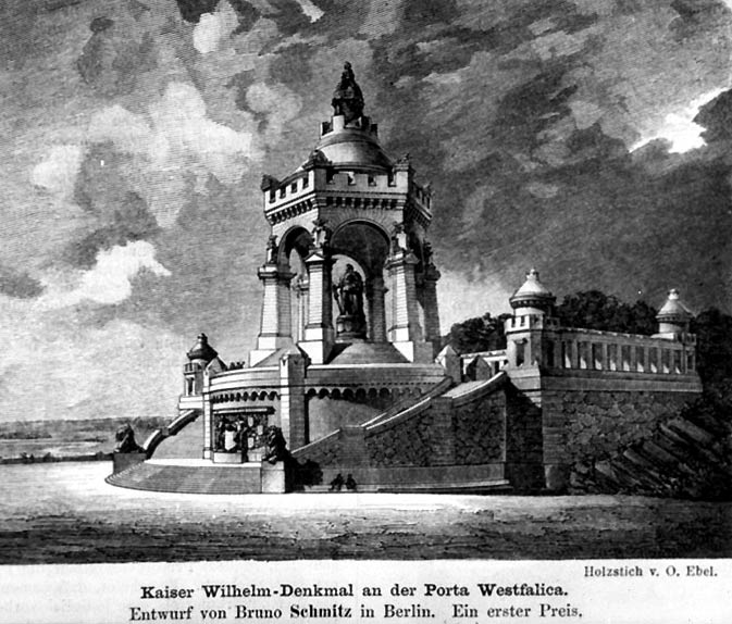 Porta Westfalica: Der preisgekrönte Entwurf für das Kaiser-Wilhelm-Denkmal von Bruno Schmitz, aus: Deutsche Bauzeitung 1916, Nr. 38 | 1916 Objekt: Schmitz, Bruno Münster, LWL-Medienzentrum für Westfalen/O. Mahlstedt URL: http://www.westfaelische-geschichte.de/med297 Internet-Portal "Westfälische Geschichte"