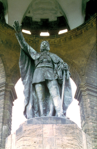 Porta Westfalica: Kaiser-Wilhelm-Denkmal, Standbild von Kaiser Wilhelm I. (1797-1888, reg. ab 1858/1861 bzw. 1871-1888) | 1994 [um] Münster, LWL-Medienzentrum für Westfalen/O. Mahlstedt URL: http://www.westfaelische-geschichte.de/med305 Internet-Portal "Westfälische Geschichte"