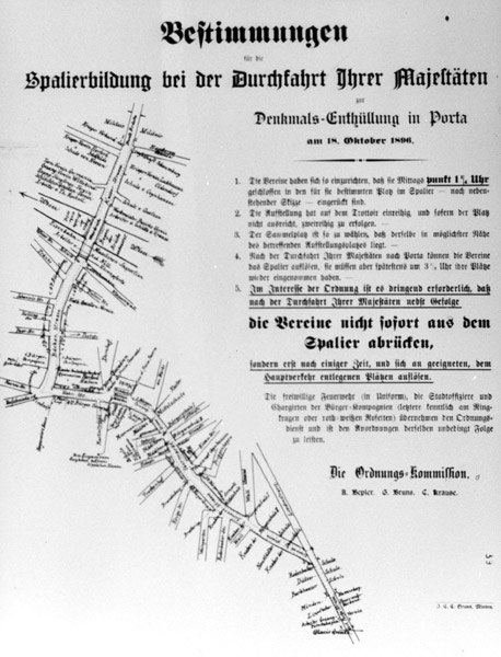 Aufstellungsplan für die Spalierbildung anläßlich der Einweihungsfeier des Kaiser-Wilhelm-Denkmals an der Porta Westfalica, 1896 | 1896 Objekt: Detmold, Landesarchiv NRW Staats- und Personenstandsarchiv Detmold Münster, LWL-Medienzentrum für Westfalen/O. Mahlstedt URL: http://www.westfaelische-geschichte.de/med310 Internet-Portal "Westfälische Geschichte"