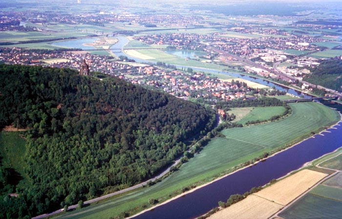 Porta Westfalica: Luftbild der Porta Westfalica, 1990 | 1990 Münster, LWL-Medienzentrum für Westfalen/Stuttgarter Luftbild Elsäßer GmbH