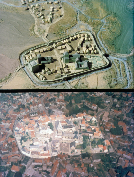 Modell "Soest um das Jahr 1000" / Marktburg im heutigen Stadtbild (Luftbild) Objekt: Soest, Osthofentormuseum (o) Münster, LWL-Medienzentrum für Westfalen/ Luftbild: Freigabe Regierungspräsident Münster, Freig.-Nr. 11267/83 URL: http://www.westfaelische-geschichte.de/med380 Internet-Portal "Westfälische Geschichte"