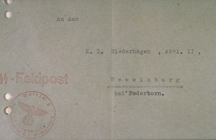 Unbenutzter Rückumschlag der KZ-Vewaltung Niederhagen/Wewelsburg | 1941-11
