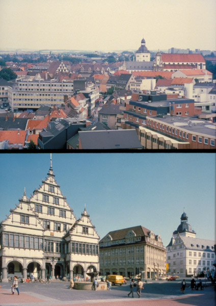 Markt (oben) und Rathaus (unten) der Stadt Paderborn Münster, LWL-Medienzentrum für Westfalen/E. Uthmann (o) / J. Klem (u)
