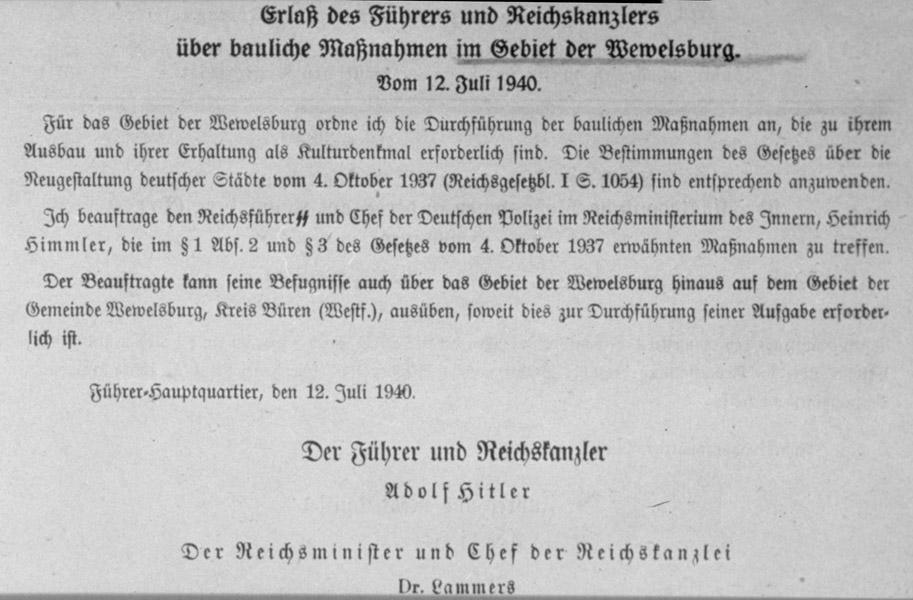 Ausdehnung der SS-Baumaßnahmen auf das Gebiet der Gemeinde Wewelsburg, Auszug aus: Reichsgesetzblatt, Jg. 1940, Teil 1, Nr. 127 vom 16.07.1940 | 1940-07-16