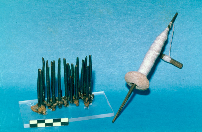 Handspindel (Nachbildung) mit Spinnwirtel und Flachshechel Objekt: Münster, Westfälisches Museum für Archäologie Klem, Josef | Münster, LWL-Medienzentrum für Westfalen URL: http://www.westfaelische-geschichte.de/med519 Internet-Portal "Westfälische Geschichte"