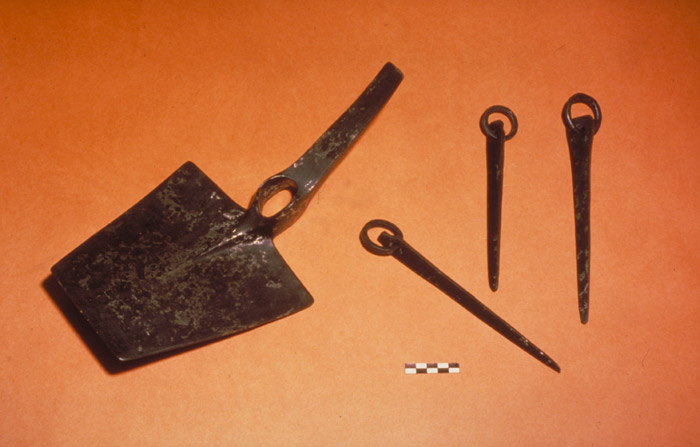 Blatthacke und Zeltheringe aus einem römischen Lager