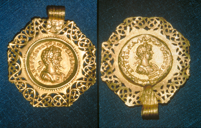 Anhänger mit gefaßtem Aureus aus Hornoldendorf, Stadt Detmold | 201 Objekt: Münster, Westfälisches Museum für Archäologie, als Leihgabe des Westfälischen Landesmuseums für Kunst und Kulturgeschichte Klem, Josef | Münster, LWL-Medienzentrum für Westfalen URL: http://www.westfaelische-geschichte.de/med544 Internet-Portal "Westfälische Geschichte"