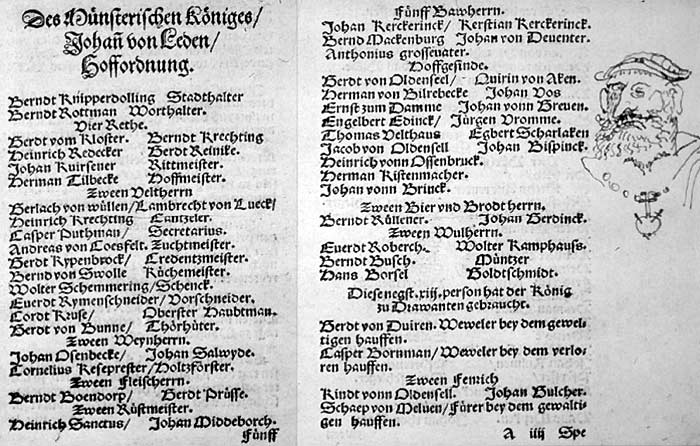 IV. Die Herrschaft der Täufer, Königsherrschaft: "Des Muensterischen Koeniges / Johan von Leden / Hoffordnung“ aus: Newe Zeitung, 1535 | 1535 Objekt: Münster, Westfälisches Landesmuseum für Kunst und Kulturgeschichte Münster | Bibl.Sign. D 9232 Münster, Westfälisches Landesmuseum für Kunst und Kulturgeschichte Münster URL: http://www.westfaelische-geschichte.de/med630 Internet-Portal "Westfälische Geschichte"
