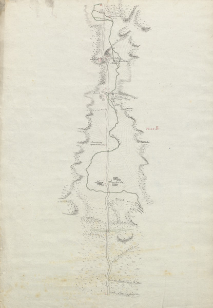 [Verlauf der wichtigsten Straßen im Herzogtum Westfalen], Plan B [hinter Olpe bis hinter Bilstein] | [um 1800]