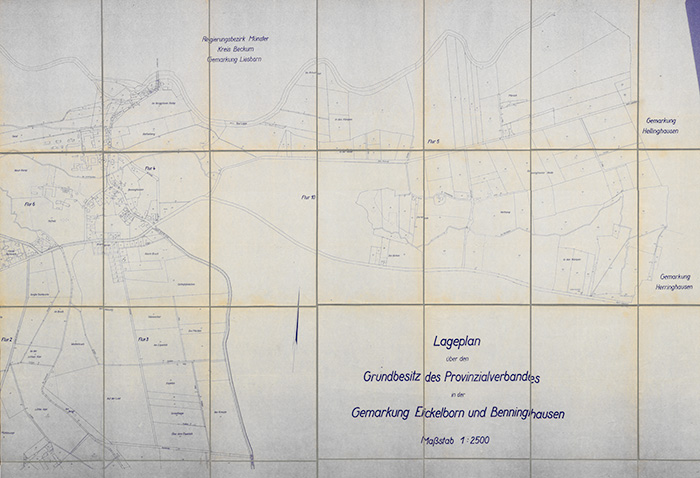 Lippstadt-Eickelborn: Lageplan über den Grundbesitz des Provinzialverbandes in der Gemerkung Eickelborn und Benninghausen Objekt: LWL-Bau- und Liegenschaftsbetrieb Münster, Internet-Portal "Westfälische Geschichte" | 66_10_04 / 20 URL: http://www.westfaelische-geschichte.de/kar993 Internet-Portal "Westfälische Geschichte"