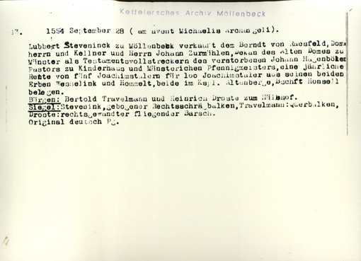 | Bestand | Möllenbeck, Haus, Urkunden | alle Regesten |