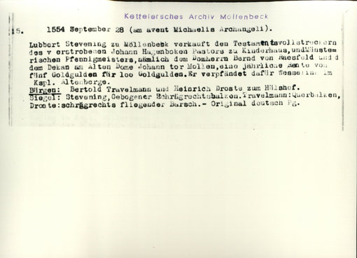 | Bestand | Möllenbeck, Haus, Urkunden | alle Regesten |