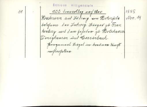 | Benutzungsort | Fürstliches Archiv zu Sayn-Wittgenstein-Hohenstein | |||||||