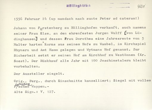 | Bestand | Höllinghofen, Urkunden | alle Regesten |