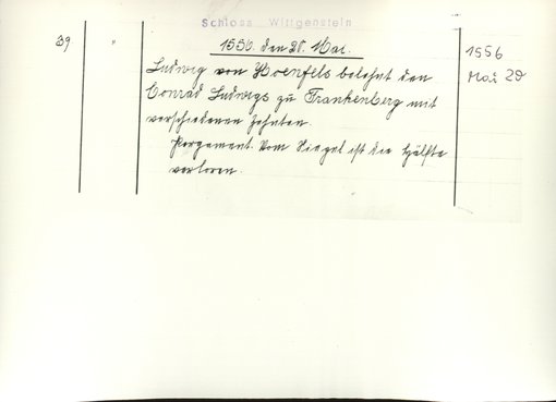 | Benutzungsort | Fürstliches Archiv zu Sayn-Wittgenstein-Hohenstein | |||||||