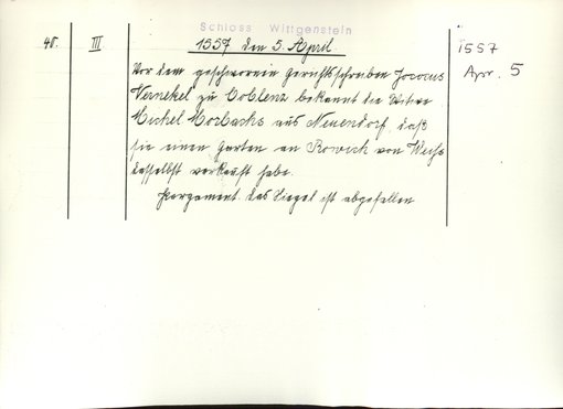 | Benutzungsort | Fürstliches Archiv zu Sayn-Wittgenstein-Hohenstein | |||||||