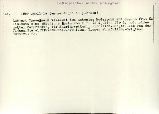 | Bestand | Möllenbeck, Haus, Urkunden | alle Regesten |