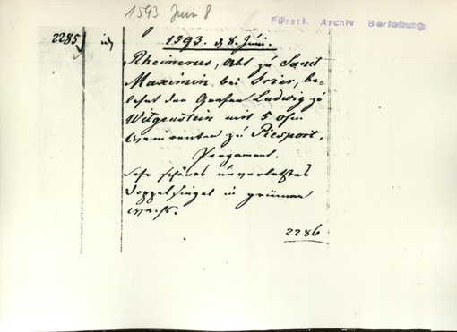 | Bestand | Urkunden | alle Regesten |