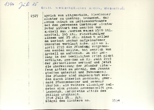 | Bestand |  Westerholt-Westerholt, Urkunden |  alle Regesten | |||||||